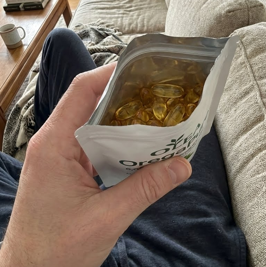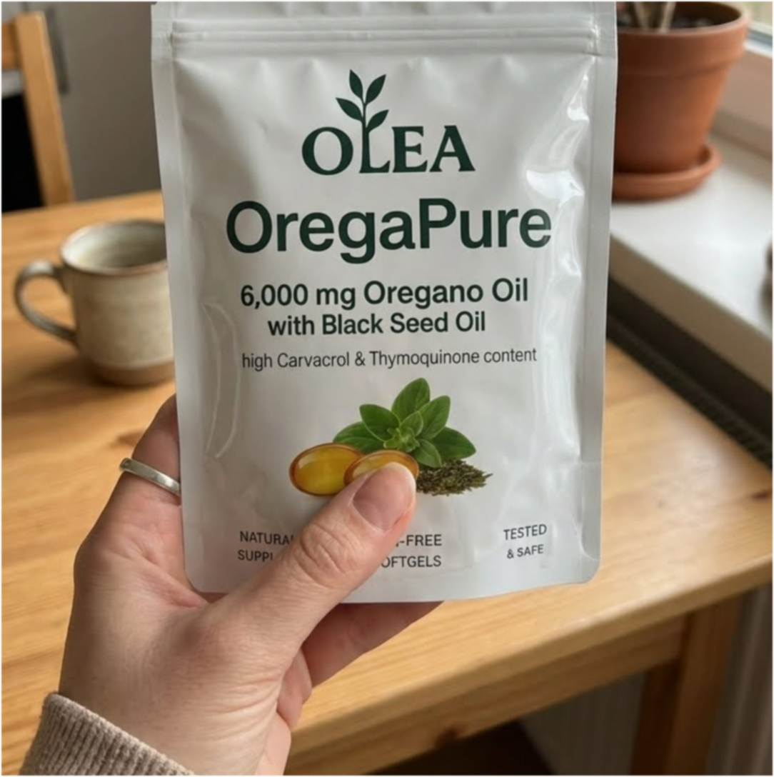 Aceite de orégano y aceite de semilla negra en una cápsula diaria limpia y efectiva.